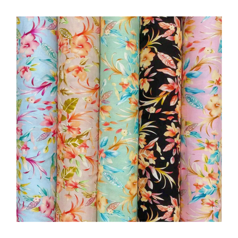 Tessuto Stampato in Rayon 100% 110gsm 30S 45S Challis Floreale a Trama Semplice in Viscosa per Abiti e Gonne di Ragazze e Ragazzi Morbido Tessuto per Indumenti